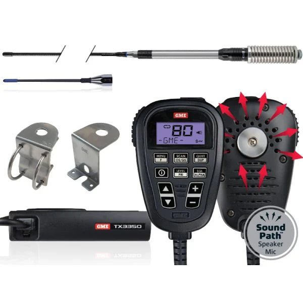 The TX3350 is an 80 channel, feature packed super compact UHF CB radio with the new SoundPath™ full function LCD Speaker Microphone.